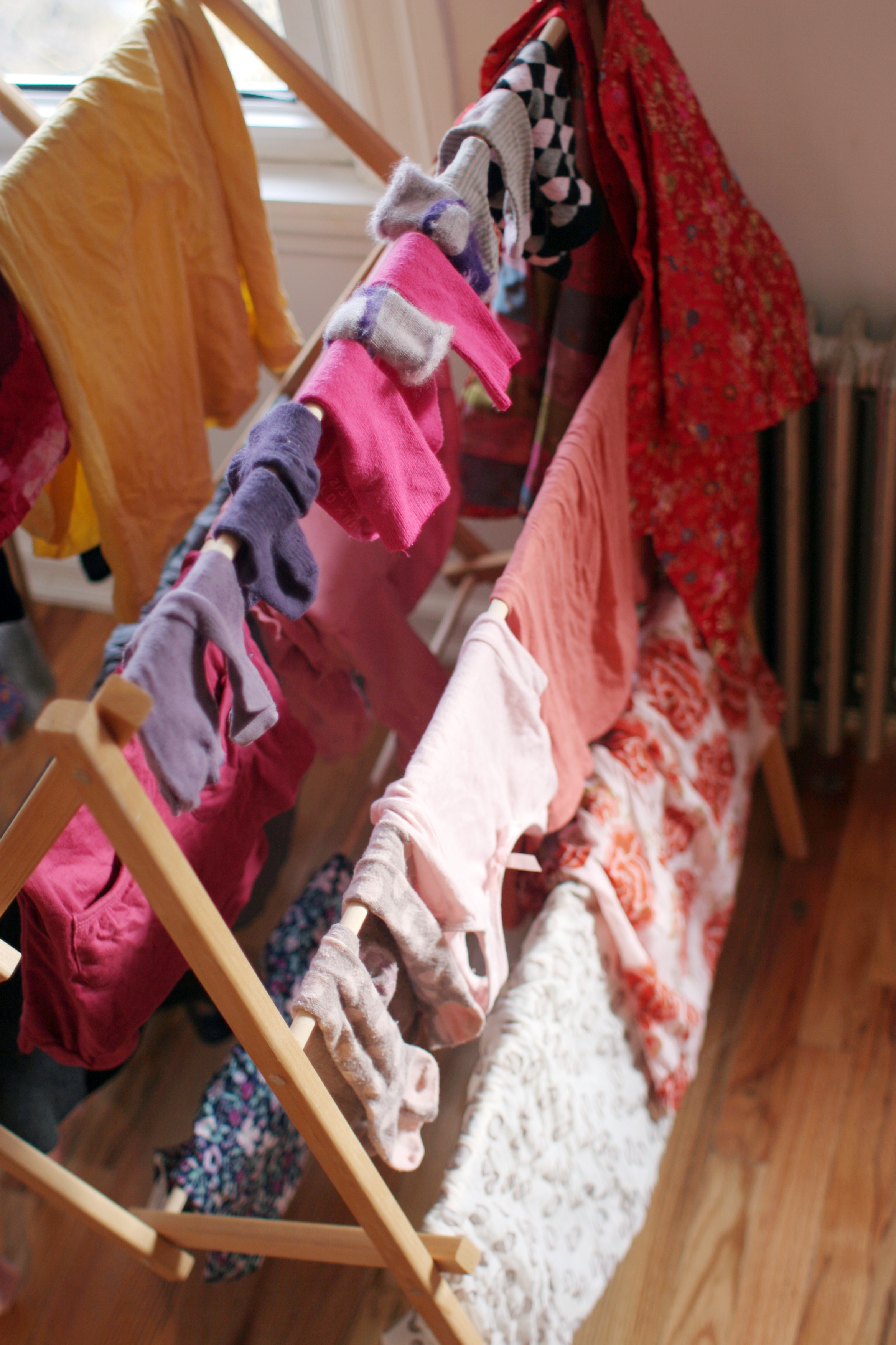 I love my drying rack.  I searched for the perfect large wooden clothes rack that would fold down to fit in our closet and this is it.  It is made by Robbins Home Goods, a multi-generational family business.  They make their products in Maine from recycled and sustainable wood.  We have had this for years and there are no signs of warping or strange stains like cheap drying racks seem to gather.  The design is simple and beautiful  and it is well worth the price.