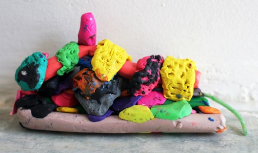 Ada brought this down for me the other day.  She made it out of modeling clay and Wikki Stix and paper and a toothpick and I think I see some of my hair wound in there.  It reminded me why we are so lucky to live here.  There is art everywhere in New York.  I don’t do enough museums lately with the double stroller, but I am counting the days until we can get back to it.  (Yes, I was one of those crazy people who dragged my two-year-old to the Alexander McQueen show).  I love that our kids are so close to art here – and music, and dance, and food, and people…I Love NY!
