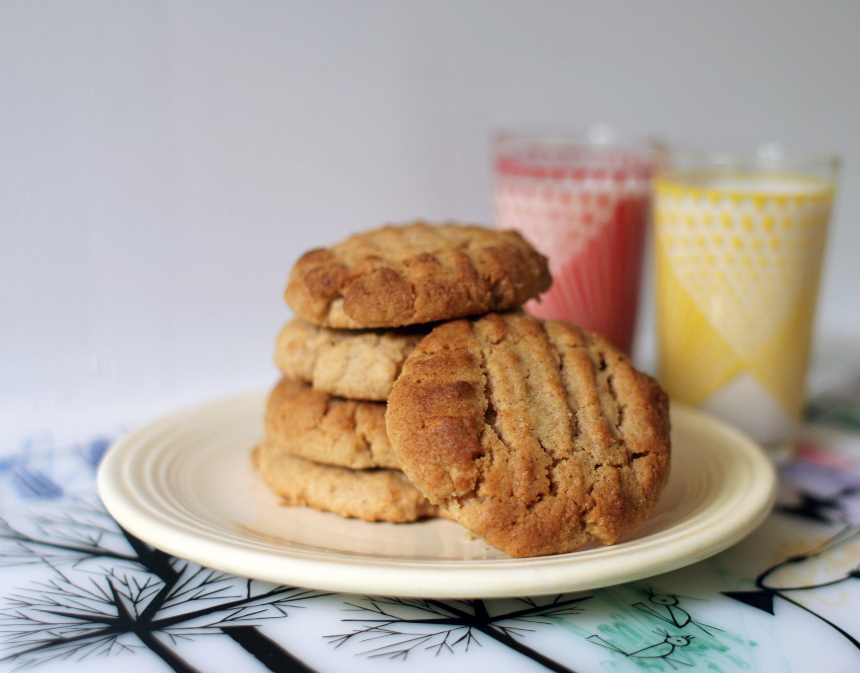 There has been rainy weather here between the sunshine and we needed some cookies to cheer us up.  A warm oven and the smell of baking always makes the day better when it is dreary outside.  Here is our favorite Peanut Butter Cookie Recipe: