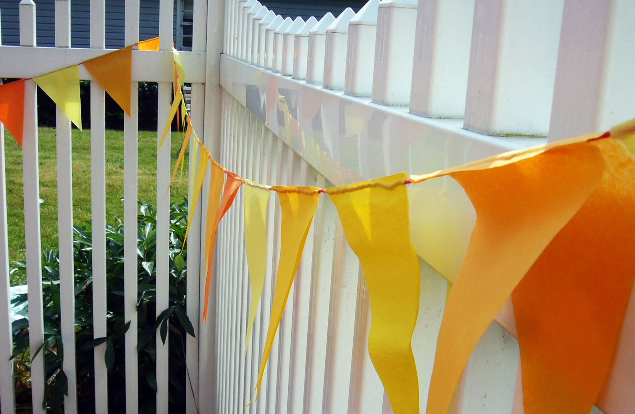 *Paper Flags. We made these by folding tissue from Nashville Wraps in half and cutting a triangle shape with point away from fold. Unfold into a diamond, put a bit of glue stick along the fold, reposition and fold over some twine. Easy!