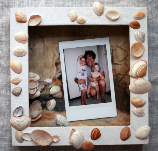 beach vacation, diy, Fuji camera, home, instant photograph, kids at the beach, shell art, shell picture frame, shells, travel