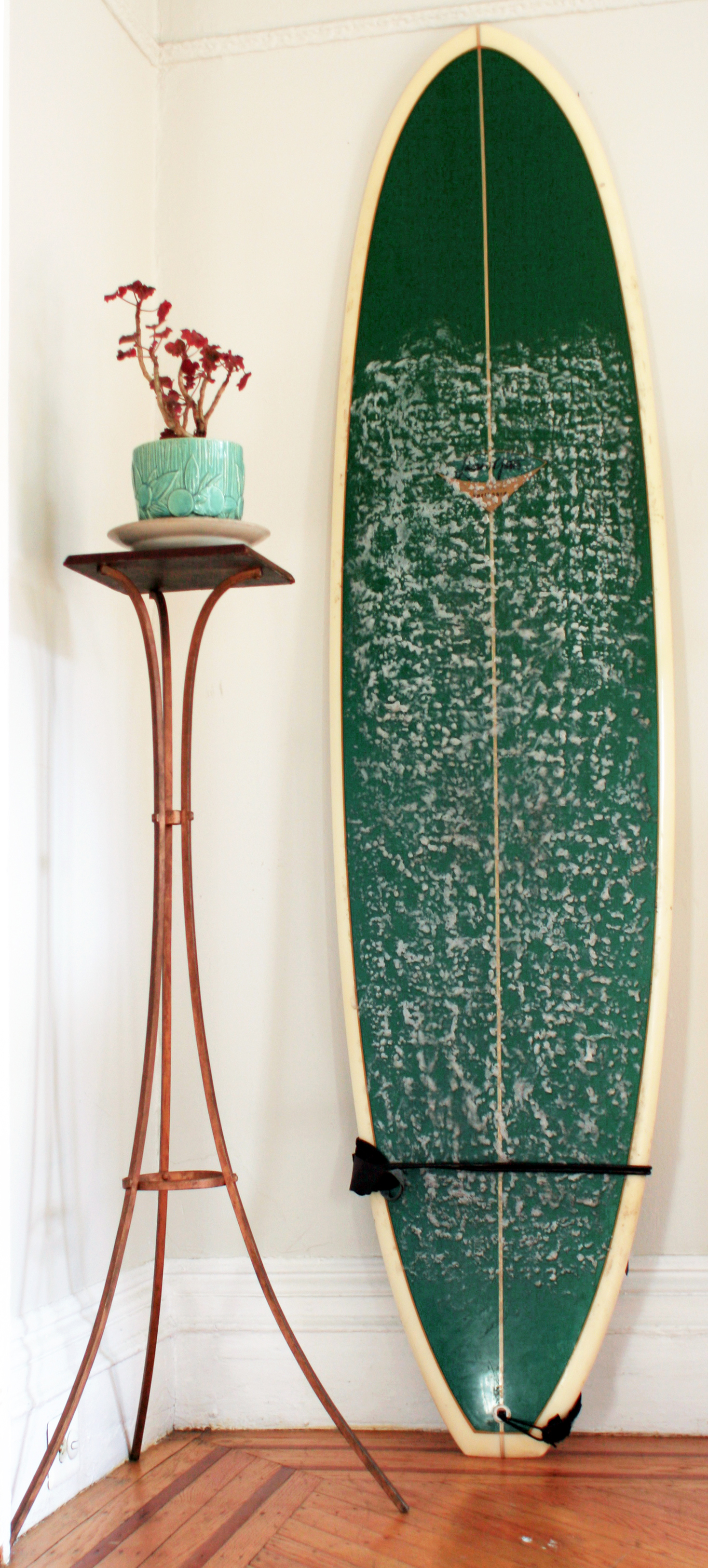 I hope you all had a good Martin Luther King Day! We were a bit under the weather here, but did manage to make it out to one of our favorite building salvage places: Build It Green. We found this super-tall, 50 inch plant stand for $20. Build It Green is an amazing, dusty place full of architectural salvage from New York City buildings. Their mission is to keep building waste out of landfills, and promote recycling of salvaged materials. The BIG warehouses hold an amazing array of tile, sinks, mantels, shelving, bathtubs…and we found five matching (!) radiators for the house. The heavy cast iron radiators have been stacked in our downstairs room next to the clawfoot tub while they await their sandblasting and powder-coating. That room is starting to look like our own salvage shop, but some day the pieces we find will all be put in their proper spots. The plant stand is now holding up the geranium I took pity on and brought inside this frigid weekend. We have been wanting more plants around here and this tall stand is the first of more to come.