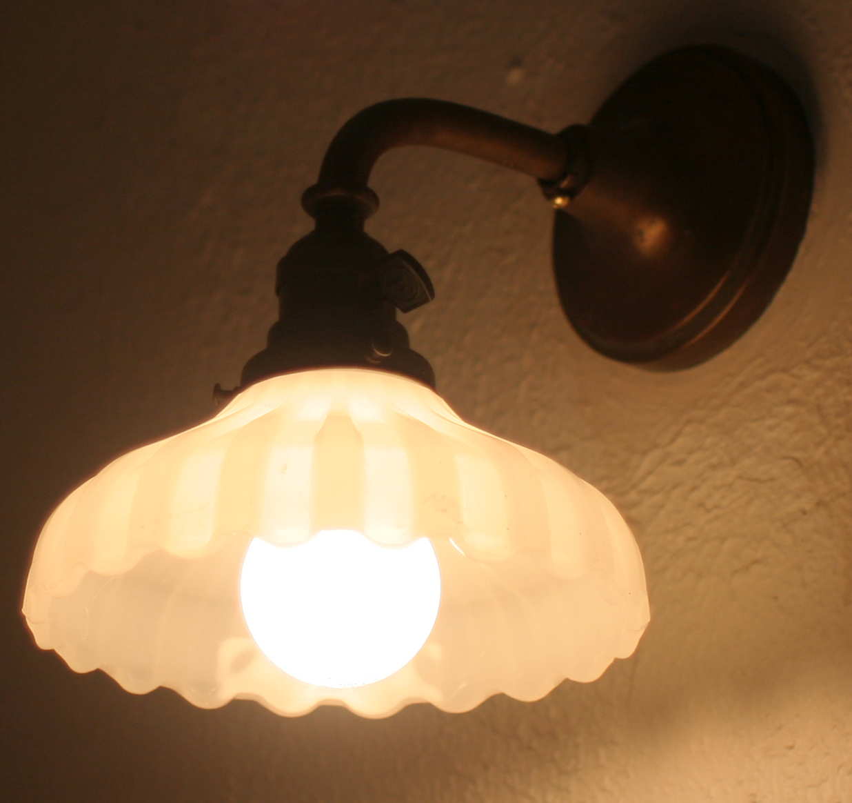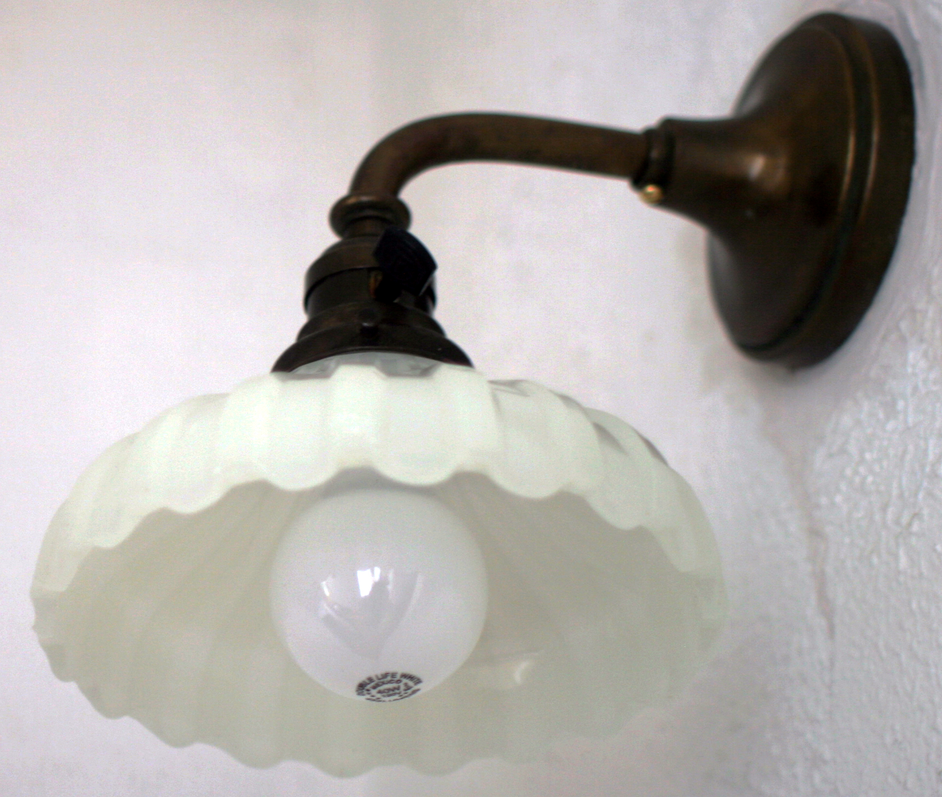 We have been searching for a sconce for our downstairs hallway for a while.  The fixture that came with the house was so awful it landed in the trash before I could get a ‘before’ picture.  (It involved some orange cubes that looked like Legos badly hot-glued around a bulb).  We found this wall sconce a couple of weekends ago at this shop in Saugerties, NY.  We usually hold out for a major bargain when we shop for house things, since we have so many things on our list.  This light was less expensive than city prices, but not as cheap as we usually go for.  We decided to buy it anyway and Chris hung it up as soon as we got home.  It turned out to be perfect for the spot and I am so happy we found it.  We are trying a new method around here: Instead of keeping our finds boxed up in a closet until our house is perfect, we have begun hanging up lights on our less-than-perfect ceilings.  It is nice to enjoy things now even if the plaster isn’t what we want it to be.   Some day our renovations will match the fixtures, but for now we are mixing perfect with not-so-perfect and getting on with living in an old house.