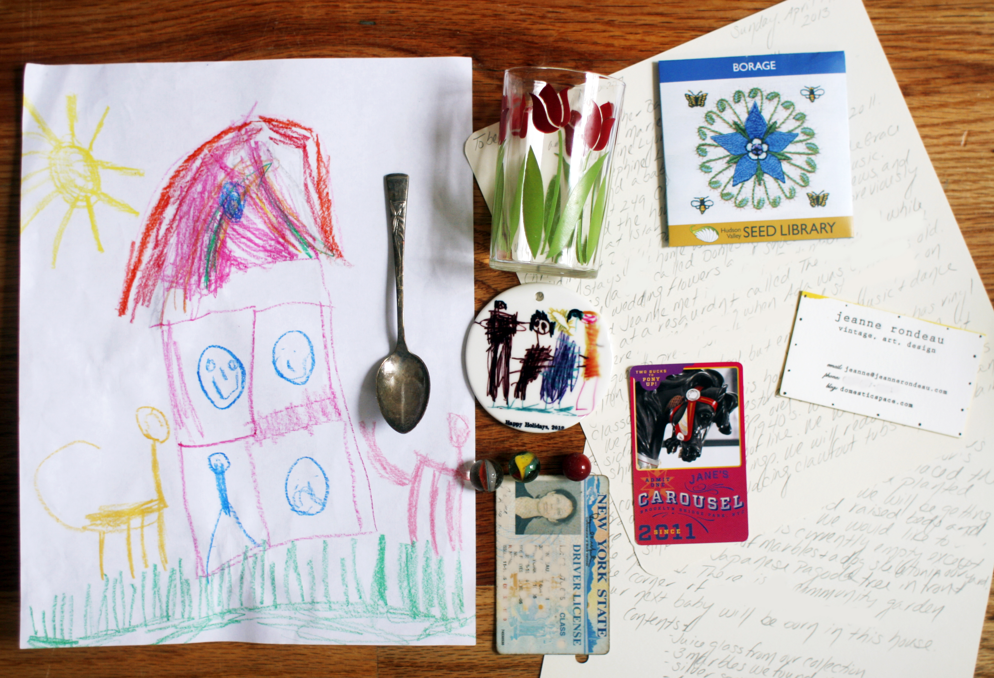 We found so many things buried in our back yard when we were renovating. The broken pottery, bone buttons, metal and marbles were all hints from the past. We also found wild violets and strawberries and bulbs planted by previous tenants. These things inspired us to make our own time capsule to bury under the grass and soil. We decided to make two identical capsules: one to be opened when Ada is 18 and one to be left under the ground until we are gone and another family digs it up. Here is what we included in our time capsules: