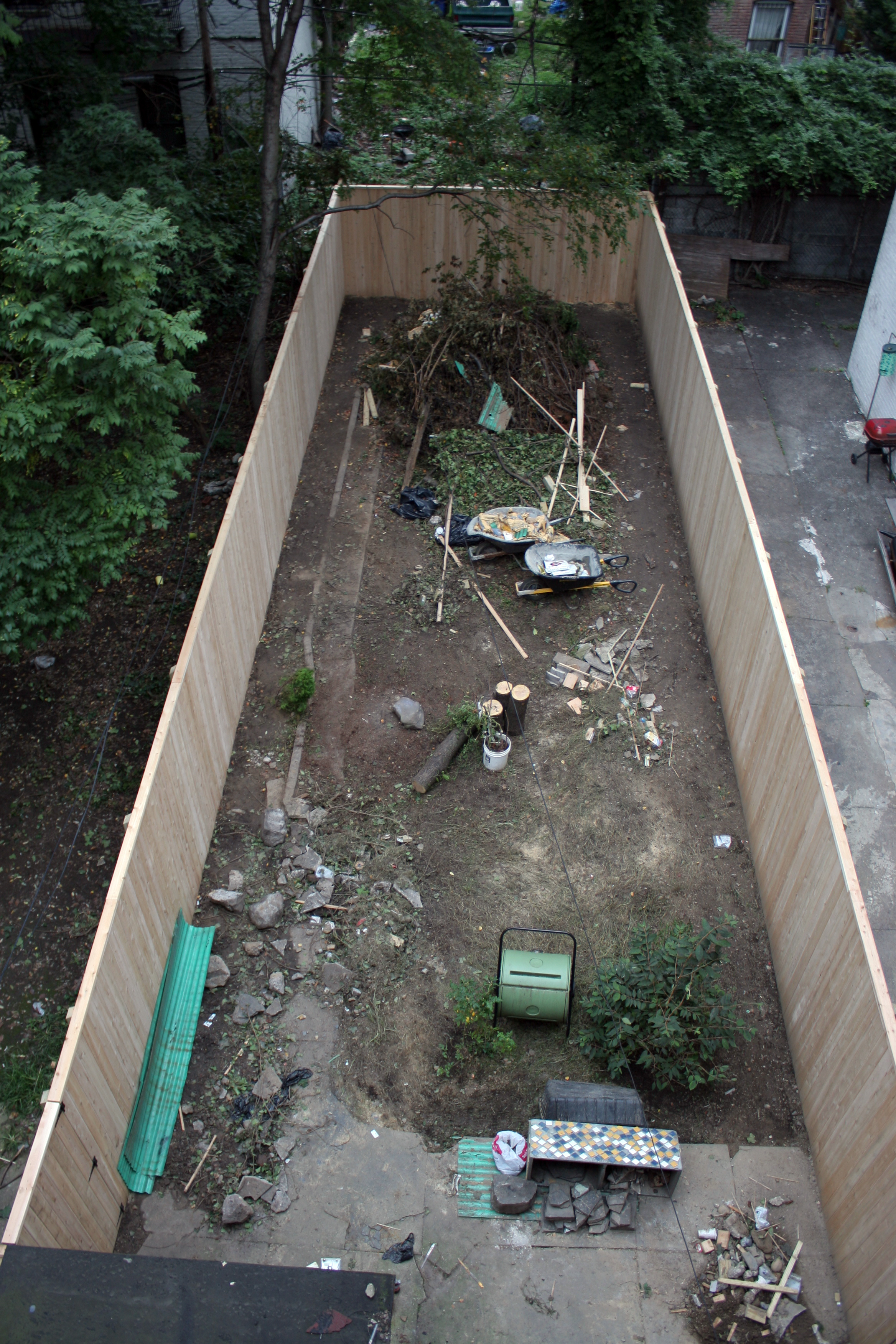 2. Get rid of the rats. After many calls to 311 to deal with open trash next door (I love NYC!) and many visits by the exterminator on our side, the rats vacated. At one point Chris and I devised an insane concrete/rebar fence to barricade ourselves from the rats. Luckily, the other methods worked first. This felt like a HUGE relief and victory!