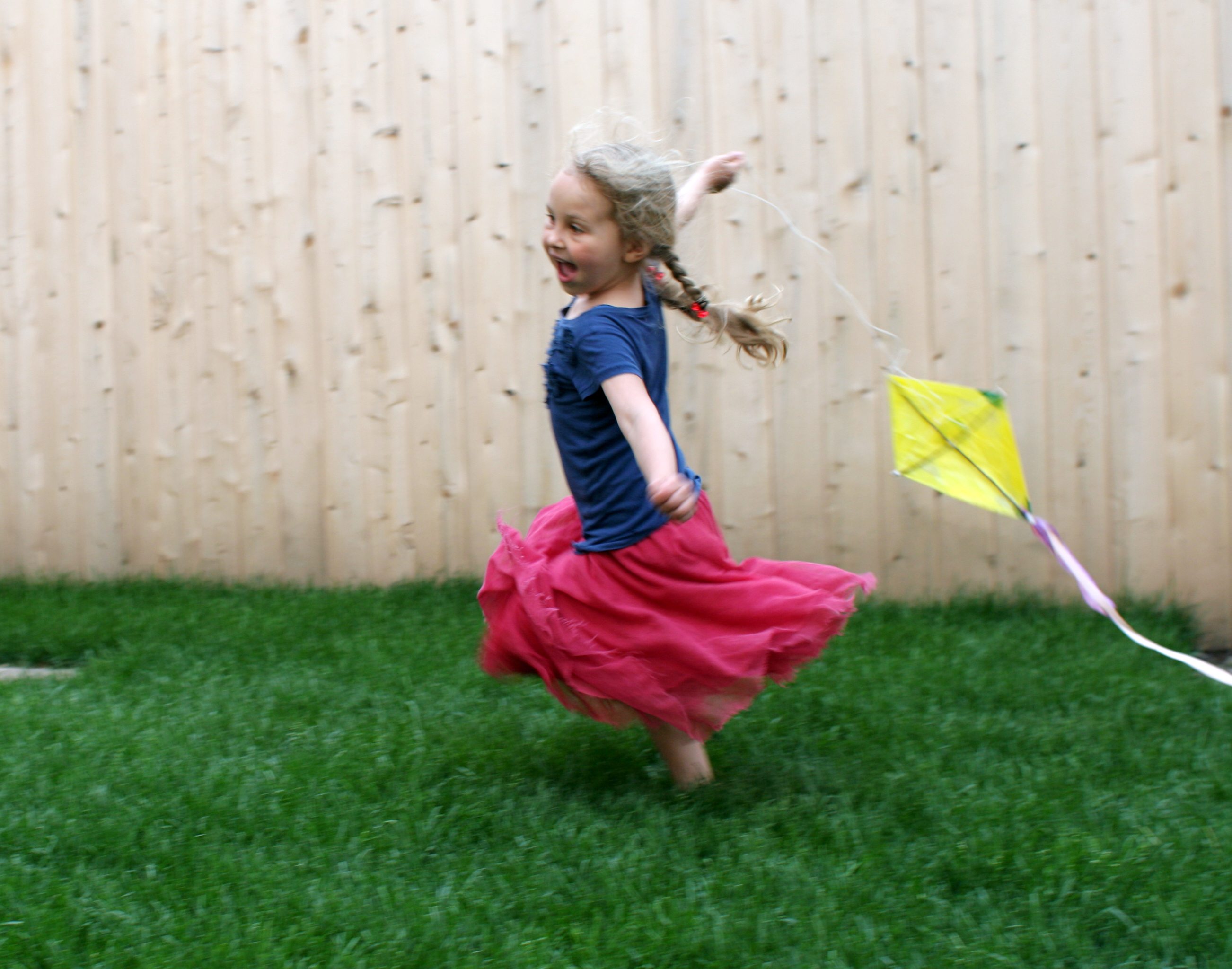 We finally got around to making kites with the pretty German Kite Paper I found in Maine a few months ago. The girls did most of the gluing, so although our kites look pretty, but are not the most aerodynamic of flying machines. Ada and Josie like to run around the yard with them nevertheless, and the kites make colorful wall decorations when not in use. To make your own Paper Kite you will need: