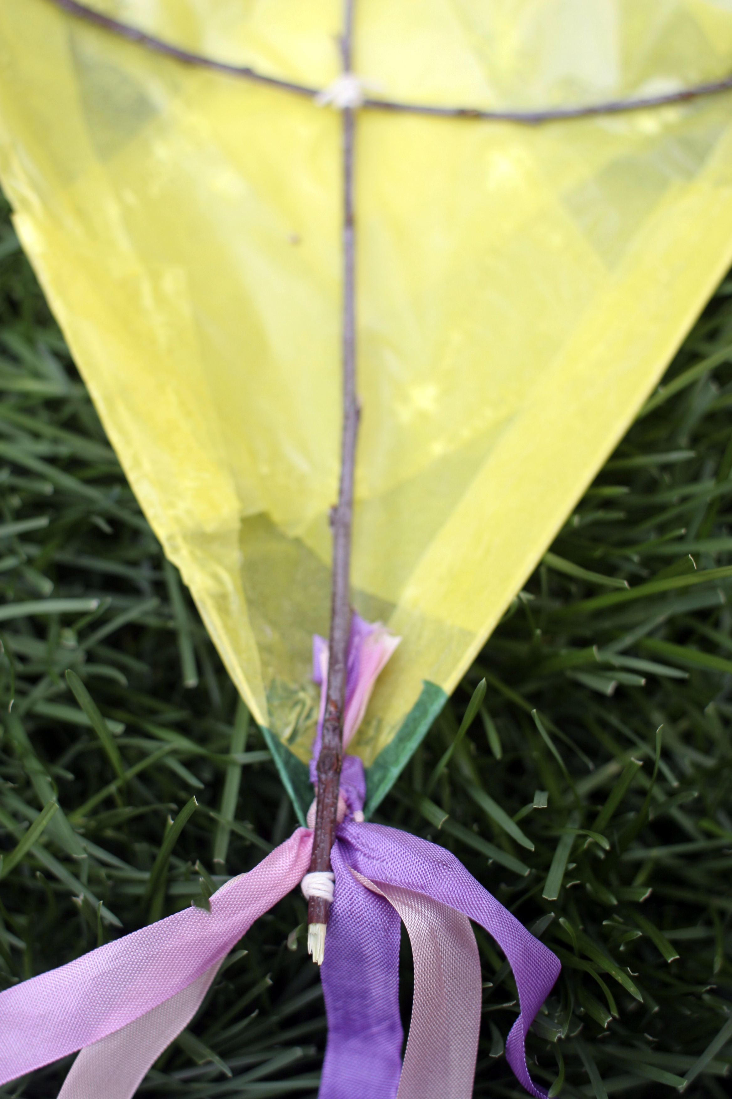 9. Tie string in upside-down T shape between ends of the short stick and the top of the diamond shape.