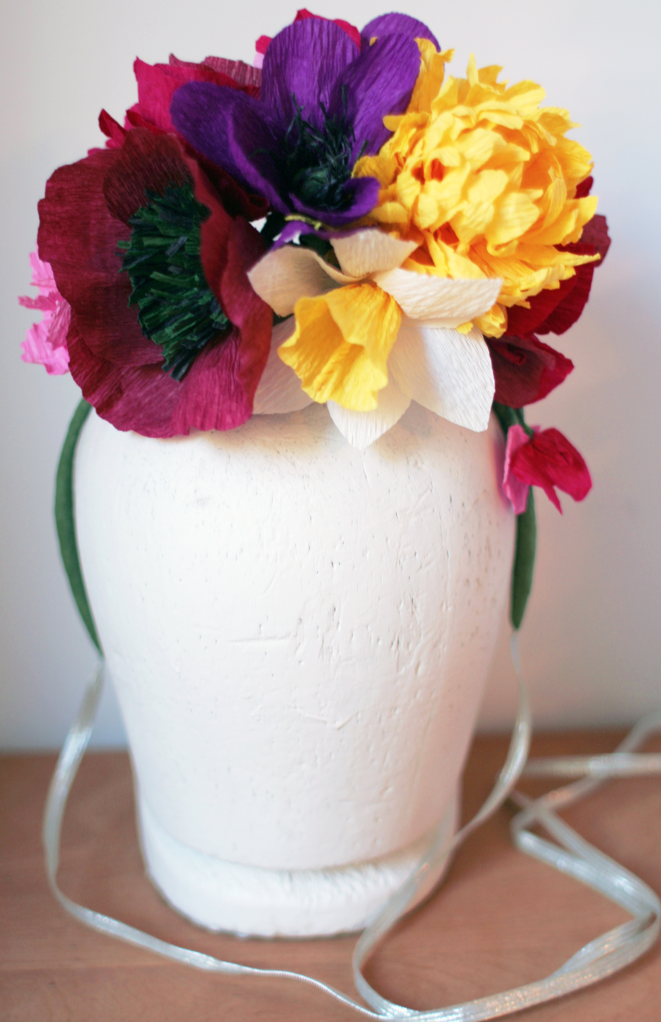 crepe paper flower, DIY paper flower crown, flower crown DIY, flower crown for kids, flower party hat, How to Make Crepe Paper Flowers, Paper Flower Crowns, paper flower hat, paper flower headband DIY, vintage paper flowers