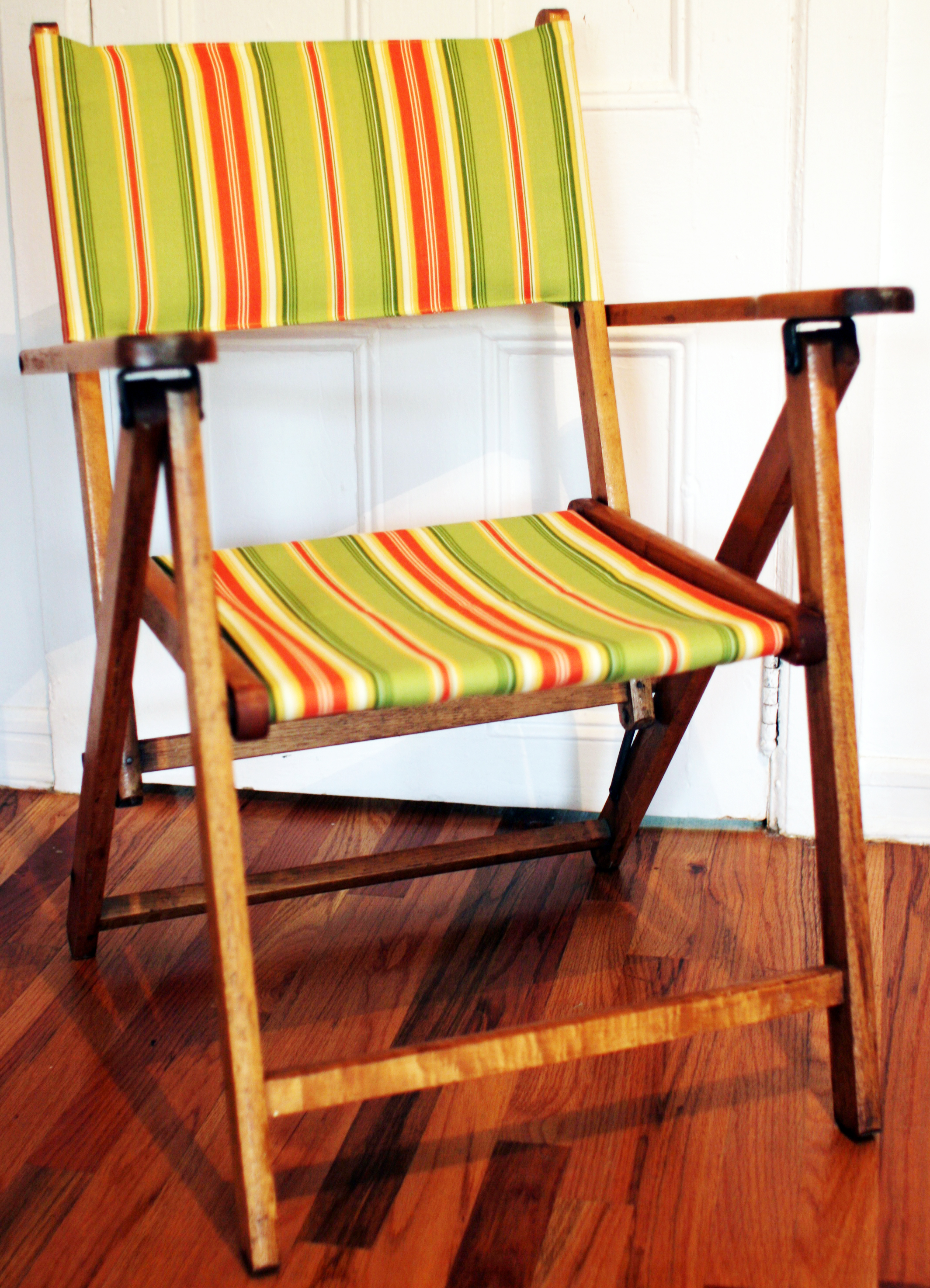*We found a similar chair last week at a stoop sale for me. It was only $8 and came from the seller’s grandpa. We are on the hunt for some cute kids chair frames, and looking forward to some lemonade and lounging in the back yard!